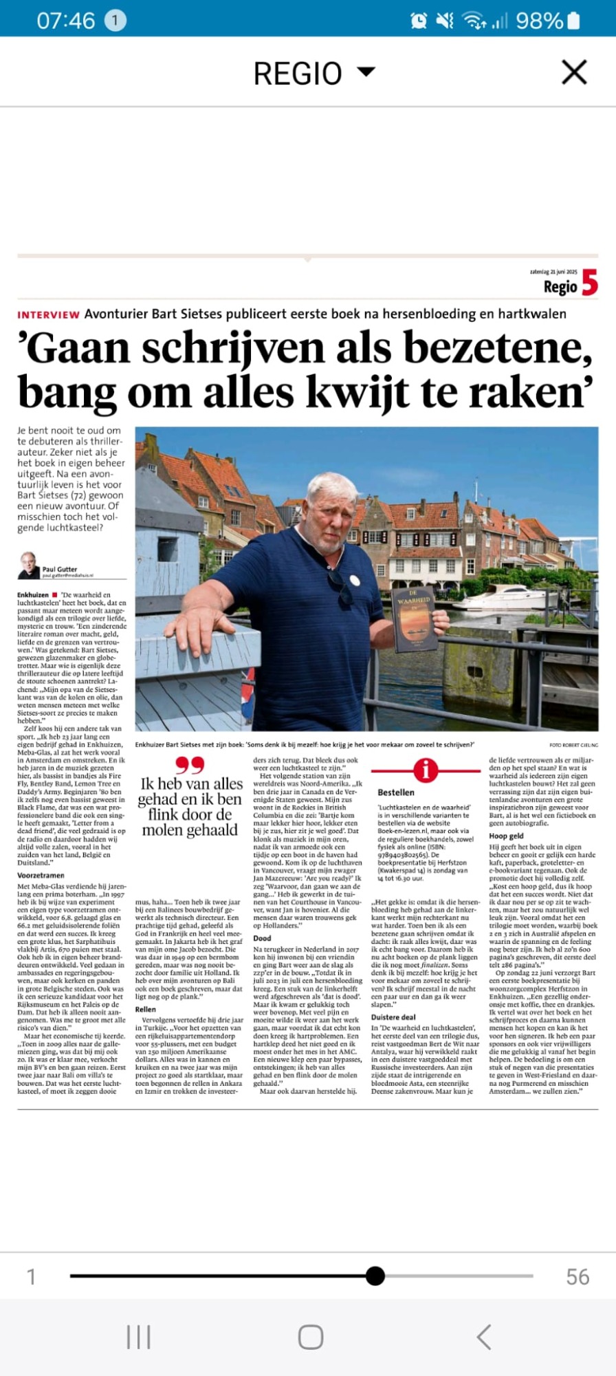 Een promotie verhaal in het Noord Hollands Dagblad, Afd. West Friesland, door Paul Gutter.